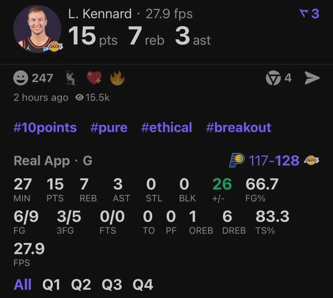 湖人4配角展最佳效果!肯纳德全面,八村垒稳得分,海斯巩固篮下