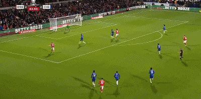 第79分钟,再次领先,温达斯远射,多伊尔脚后跟破门,切尔西1-2落后