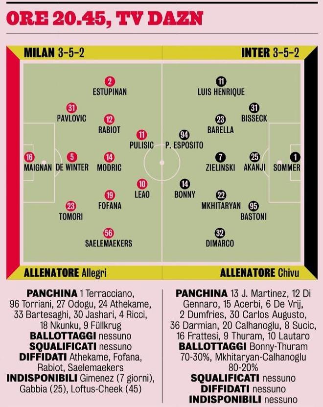 反观米兰这边,除了左路巴尔特萨基之外,其他都是全主力阵容出战。首发阵容缺少劳塔罗、小图拉姆、恰尔汗奥卢、邓弗里斯等绝对主力的国米,对阵基本全员健康的AC米兰,这也让很多内拉对本场比赛结果心生忧虑!